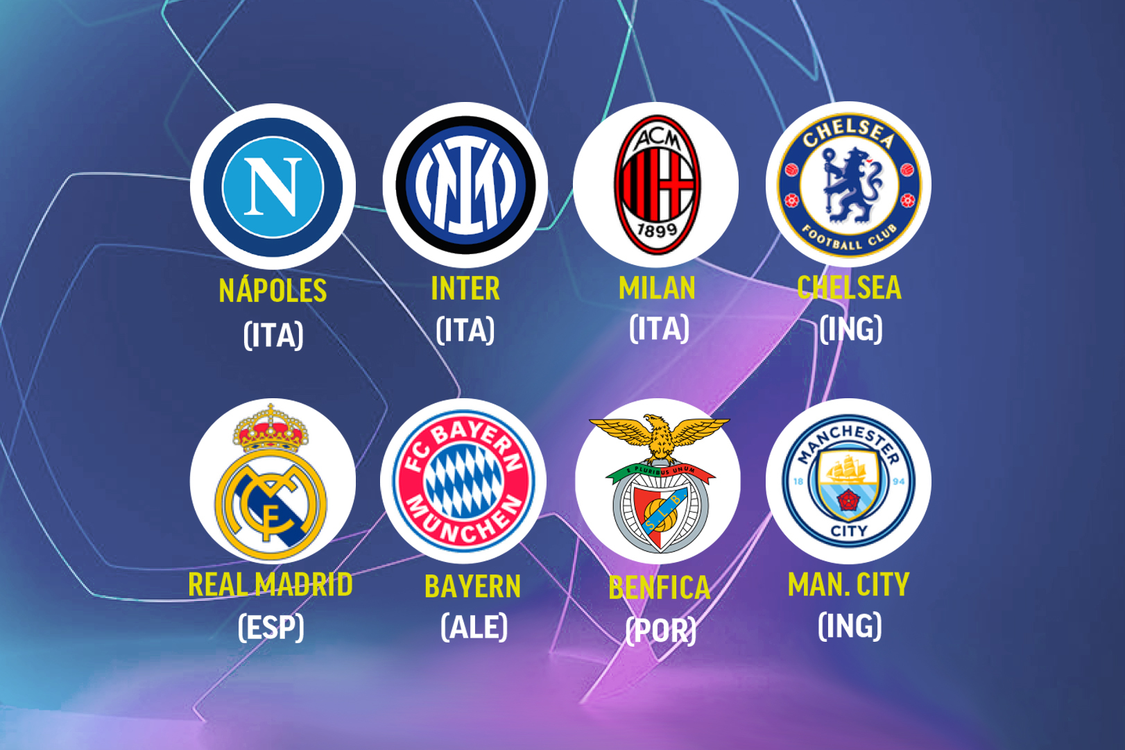 Los ocho equipos clasificados a los cuartos de final de la Champions League