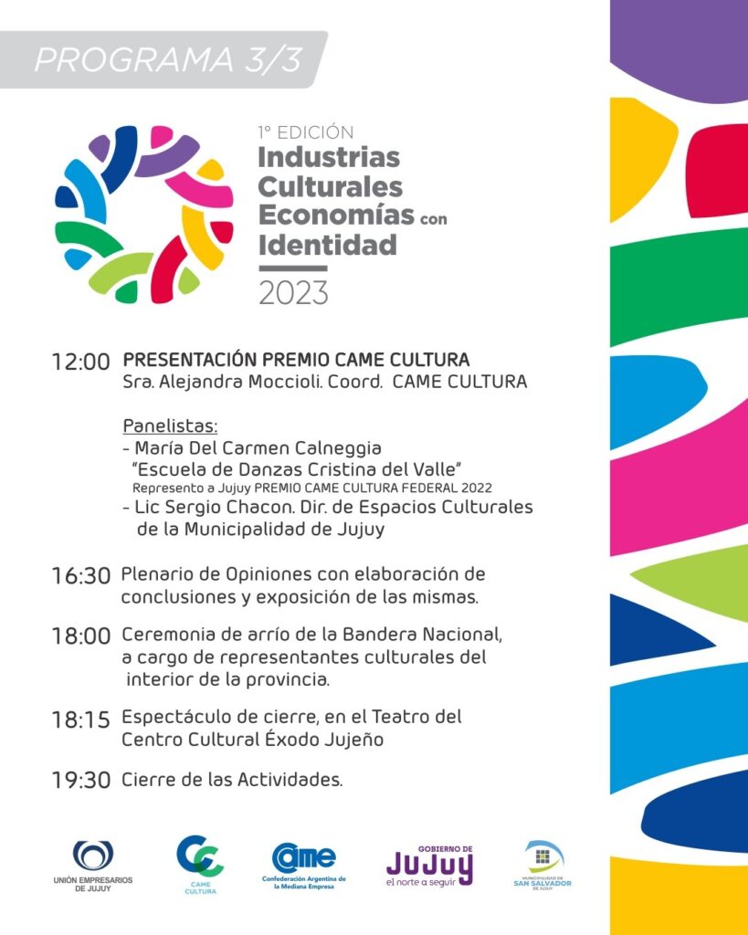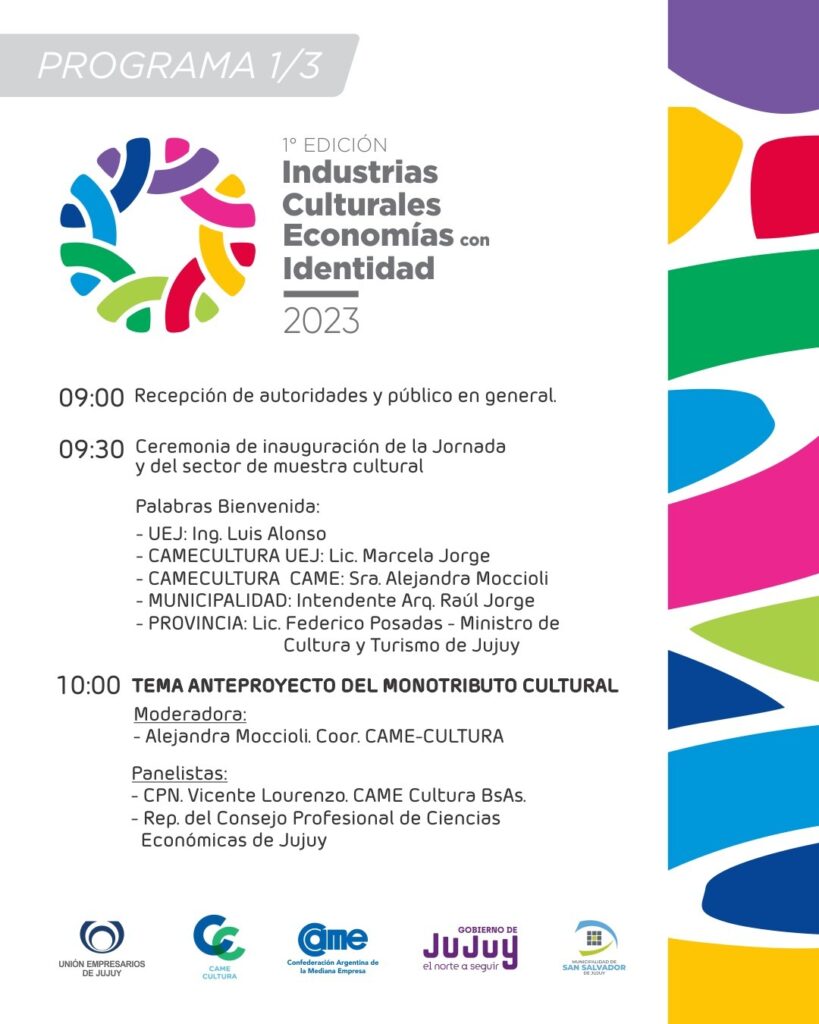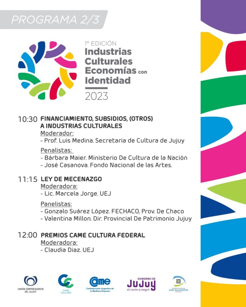 La Unión Empresarios de Jujuy lanzó el encuentro «Industrias Culturales, Economías con Identidad», que tendrá lugar el 14 de junio de 09.00 a 13.00 y de 16.30 a 19.30 hs. en el centro cultural «Éxodo Jujeño» de San Salvador de Jujuy.