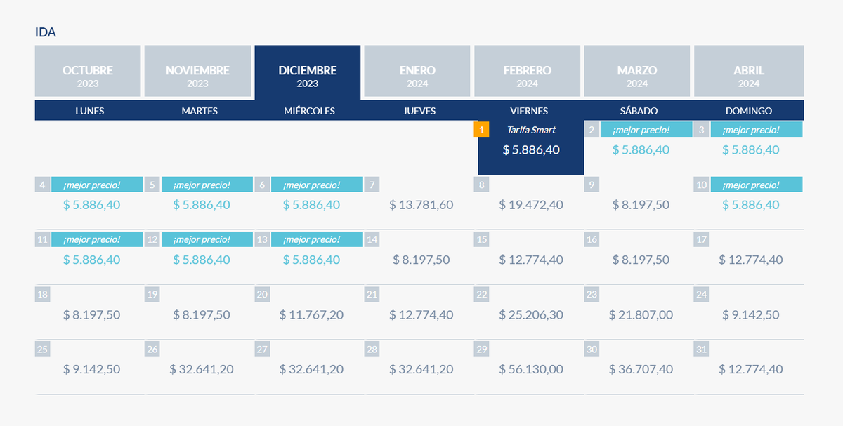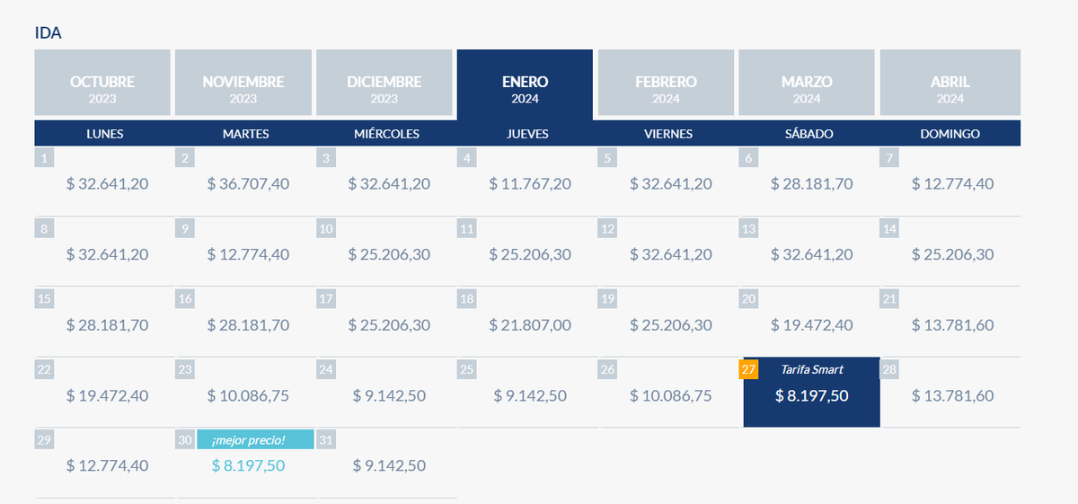 - Buenos Aires y Mendoza: desde $10.000 por tramo (teniendo en cuenta las fechas, se pueden conseguir vuelos muy baratos). Para enero y febrero, plena temporada alta, al día de la fecha (18/10) se pueden conseguir desde $14.000.