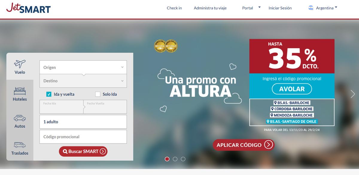 Recordemos el 20% de descuento que existe en ambas compañías aéreas para jubilados y un acompañante. Sin embargo, en esta oportunidad, JetSmart ofrece 35% de descuento para volar en tres rutas nacionales: