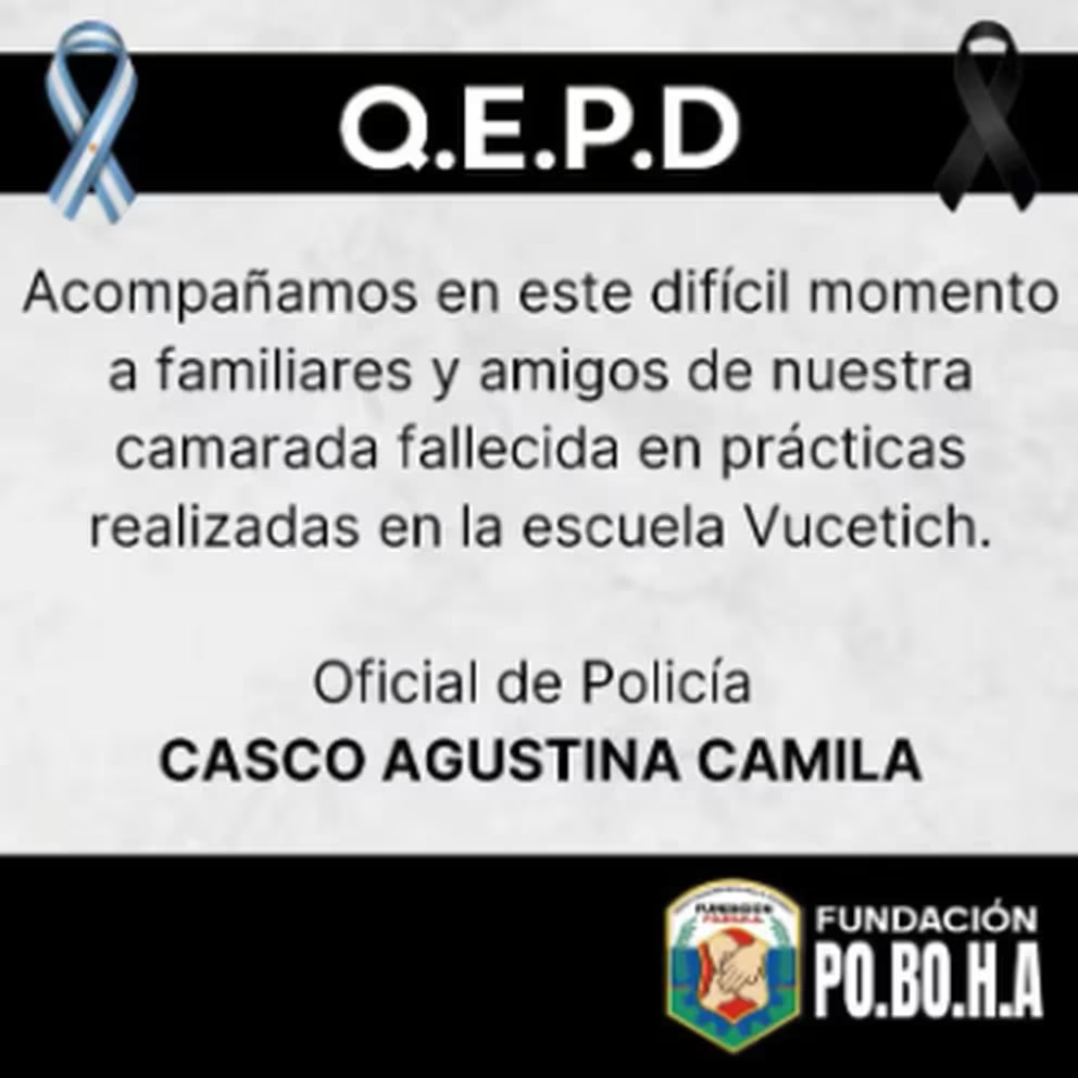 Agustina Camila Casco (21) era cadete de la Escuela de Policía Juan Vucetich y murió en las últimas horas en la unidad de terapia intensiva de la Clínica Provincial de Merlo a la que había sido derivada el 19 de noviembre pasado desde el Hospital del Bicentenario de Ituzaingó. Allí había llegado tras pasar dos días adolorida en su casa, durante sus francos de servicio. Según su madre, le comentó que había sufrido un golpe durante las prácticas de esposamientode la semana.