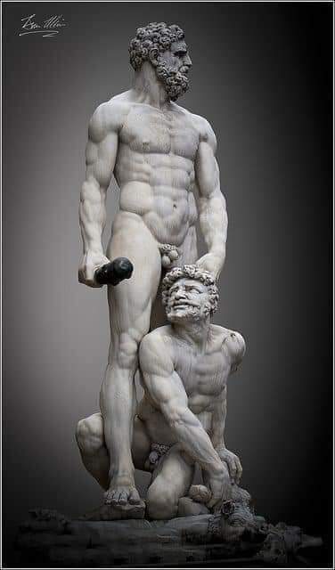 Fue asesinado por Hércules después de aterrorizar la Colina Aventina antes de la fundación de Roma.