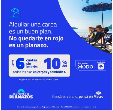 Los clientes pueden canjear puntos por millas de aerolíneas y beneficios turísticos. Para más detalles, visitar: https://www.macro.com.ar/verano