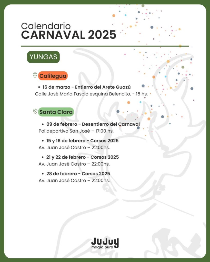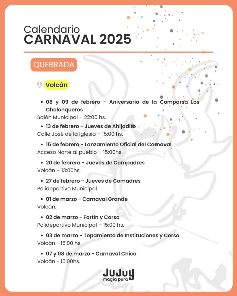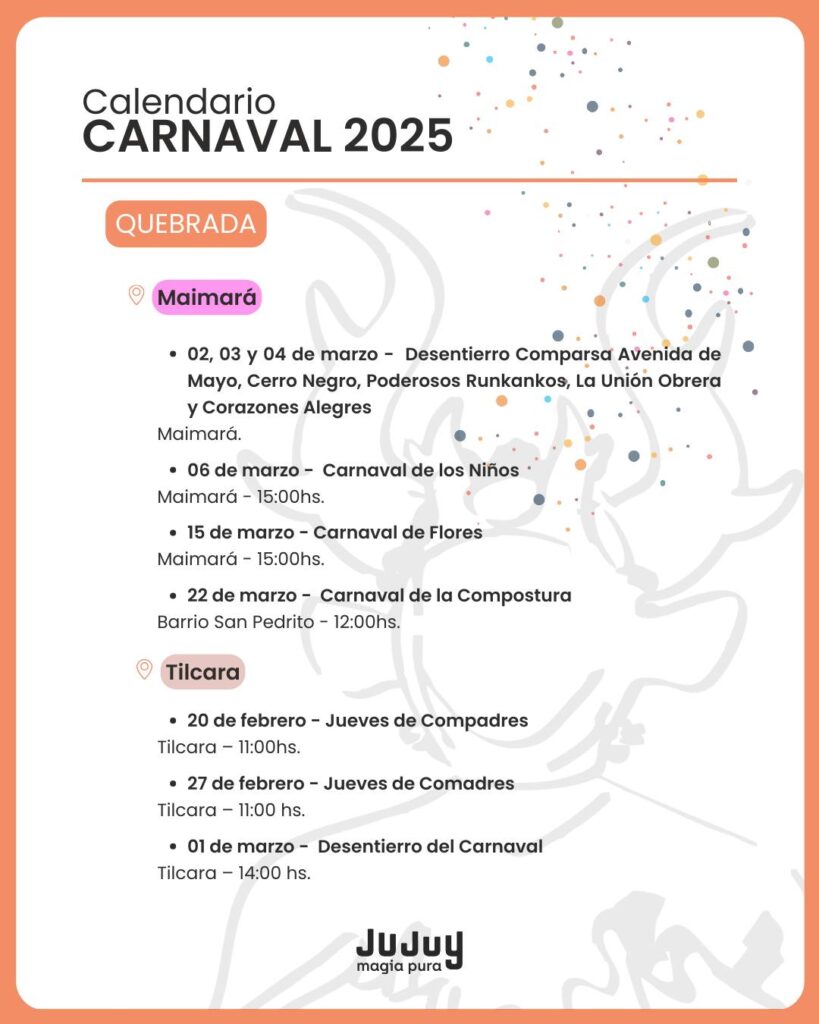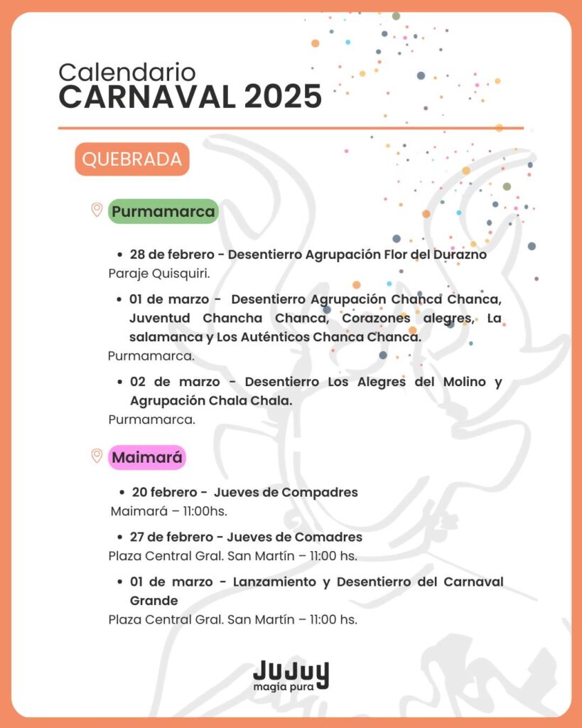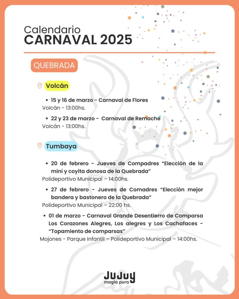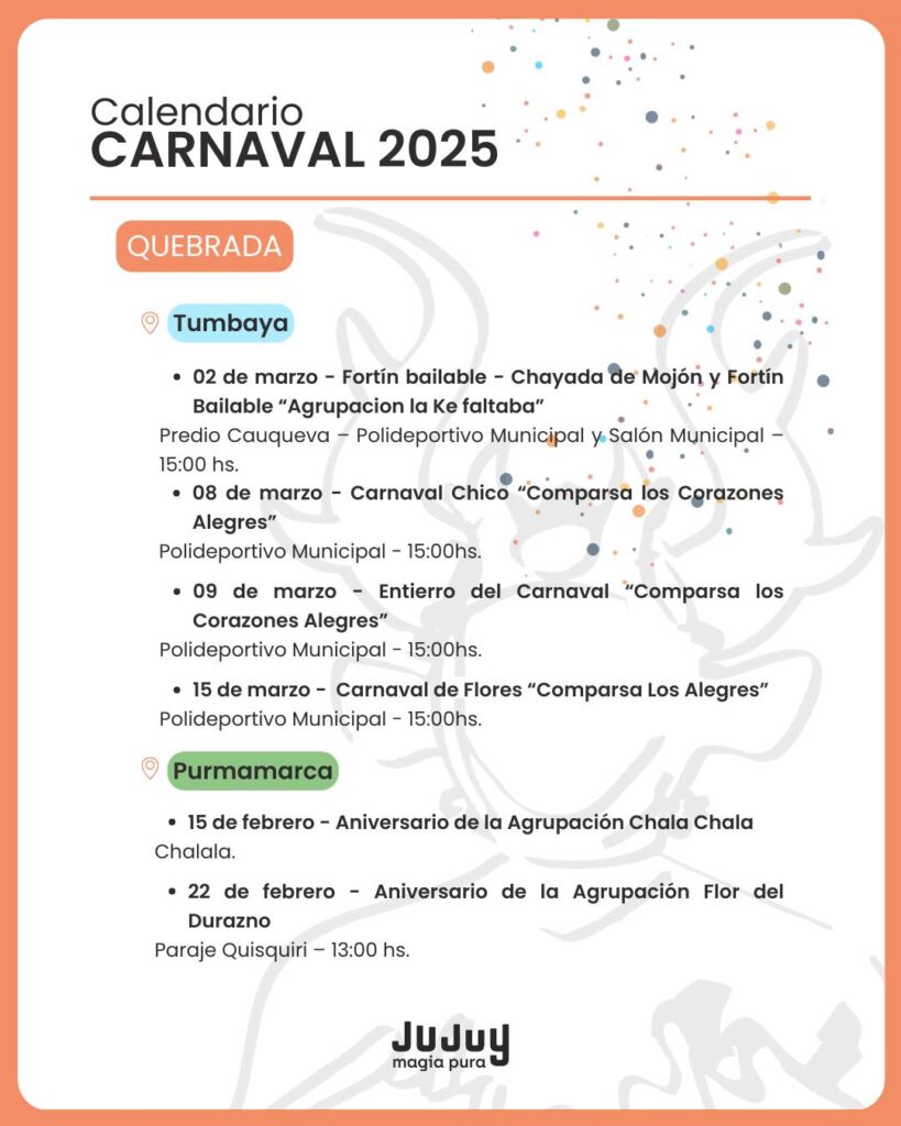 El Gobierno provincial dio a conocer el cronograma de actividades que se realizarán en las cuatro regiones de Jujuy, con desentierros, comparsas y celebraciones tradicionales.