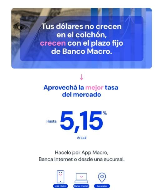 Banco Macro tiene la mejor tasa del mercado para plazo fijo en dólares: hasta 5,15% anual.