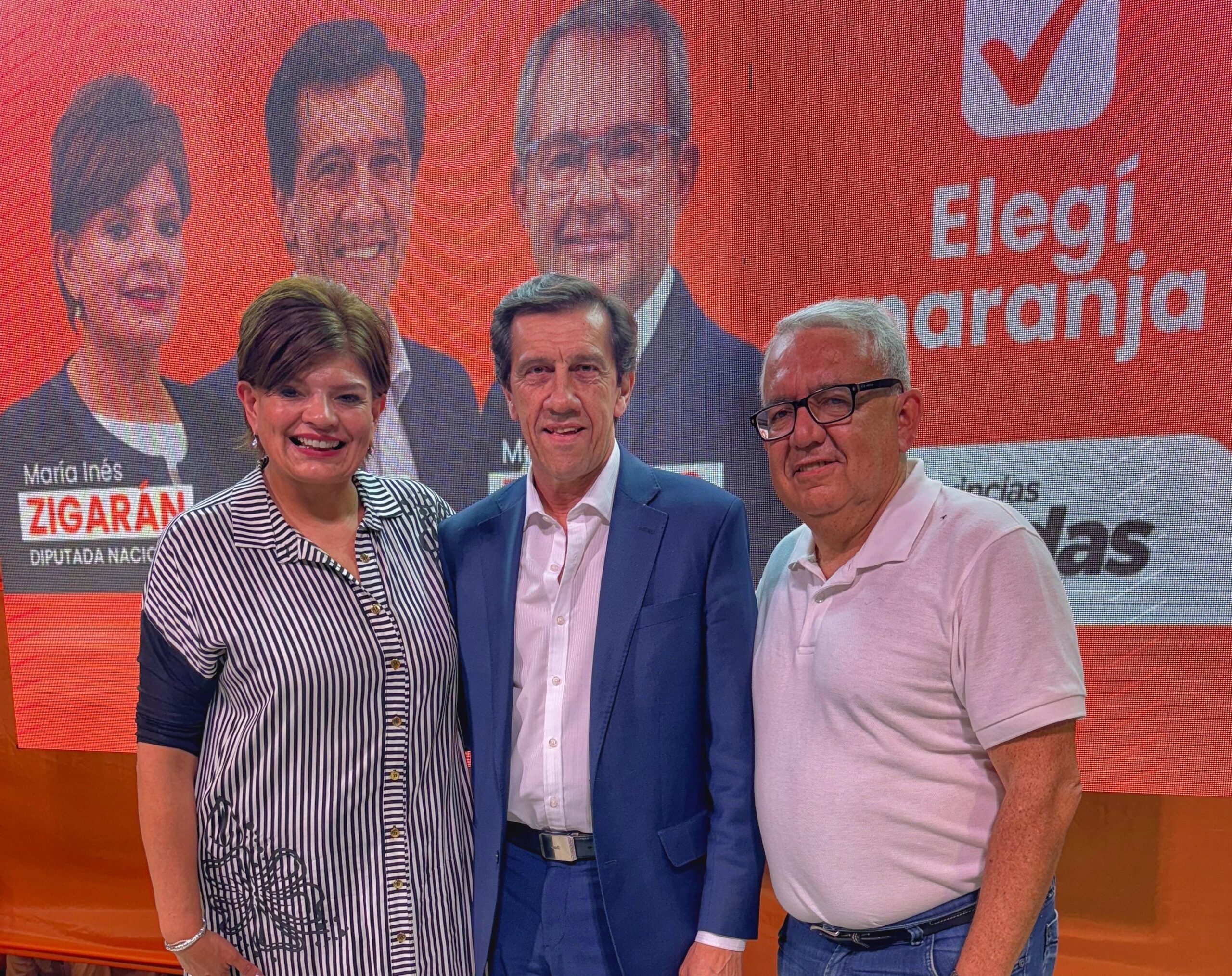 El gobernador Carlos Sadir encabezó el cierre de campaña en San Pedro del Frente Jujuy Crece en Provincias Unidas, junto a María Inés Zigarán y Mario Pizarro, candidatos a diputados nacionales por la lista naranja.