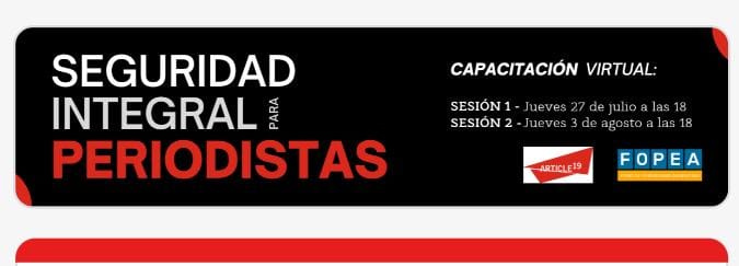Con el objetivo de aplicar medidas de seguridad que permitan a periodistas garantizar el libre ejercicio de su libertad de expresión, los invitamos a participar de esta capacitación virtual que…
